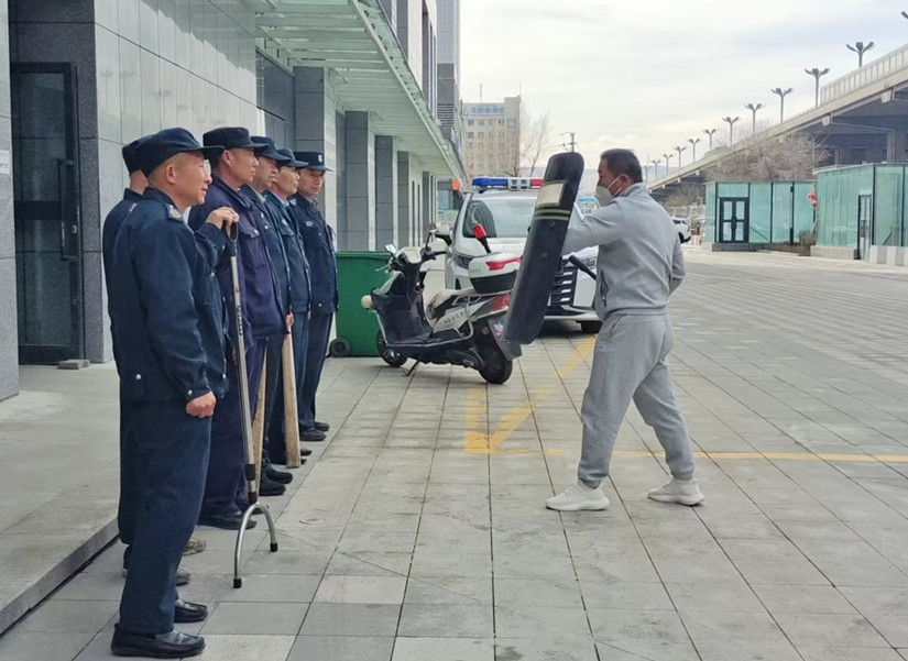 在民警同志的帶領(lǐng)下學(xué)習(xí)應(yīng)急事件如何應(yīng)對(duì)處理后,應(yīng)急安全員再次已實(shí)操方式帶領(lǐng)安保人員熟練了防護(hù)盾、防暴棍、防爆叉等防暴器材的使用方法,并及時(shí)糾正安保人員在使用防暴器械過程中存在的問題,確保他們能夠正確有效的操作防暴器械。